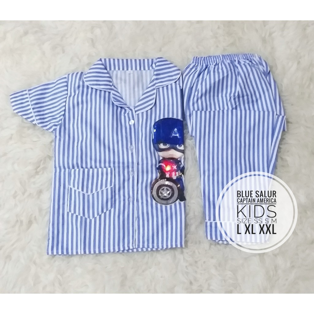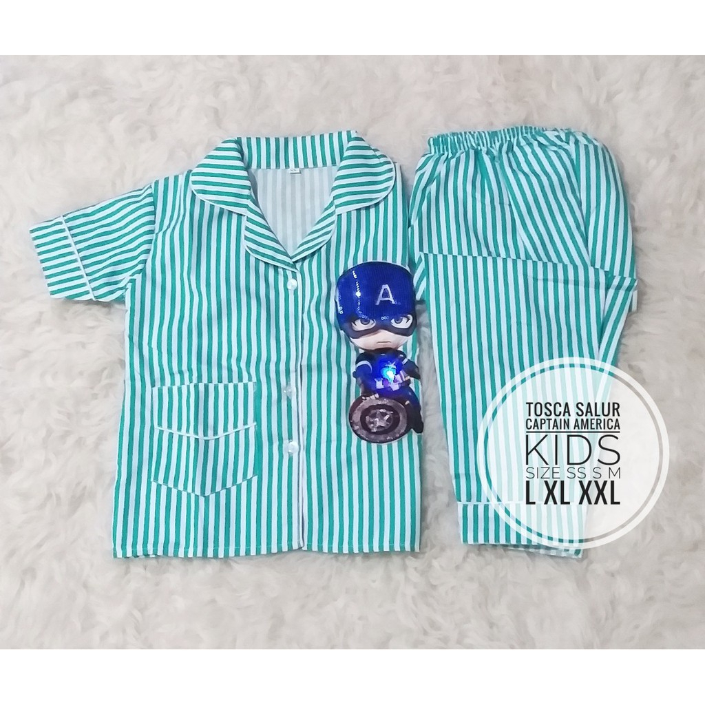 Koleksi baju tidur anak laki-laki terbaru dengan motif Stripe (salur) yang stylish. Menggunakan bahan Micropoly Cotton Grade Tinggi yang teksturnya sejuk di kulit dan tidak membuat gerah.